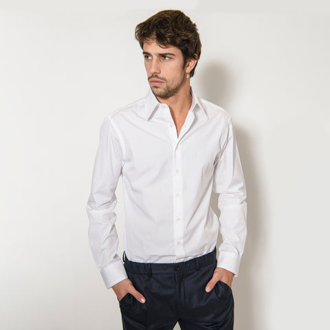 Chemise "Monaco" en Popeline Blanche à Col Pointe (Nouveauté)