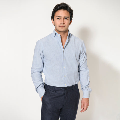 Chemise Homme Nouveau Col “Cutaway” en Chambray de Jeans à Fines Rayures. 100 % Coton.