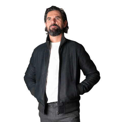 Bombers "Honfleur" en Nubuck Bleu Marine (Mouton Retourné)