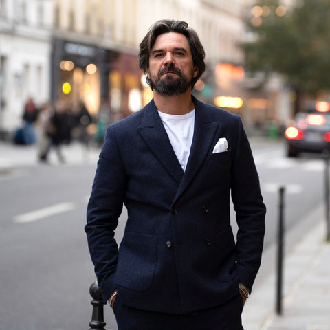 Veste Croisé "Birmingham" en Flanelle Bleu Marine et Poches Plaquées Vitale Barberis Canonico