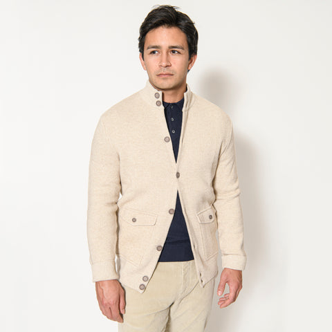 Pull Veste "Syracuse" Boutonnée Beige à Poches Demi Lune