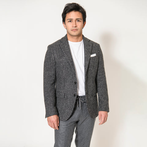 Veste "Dino" en Laine à Pied de Poule Grise et Noir